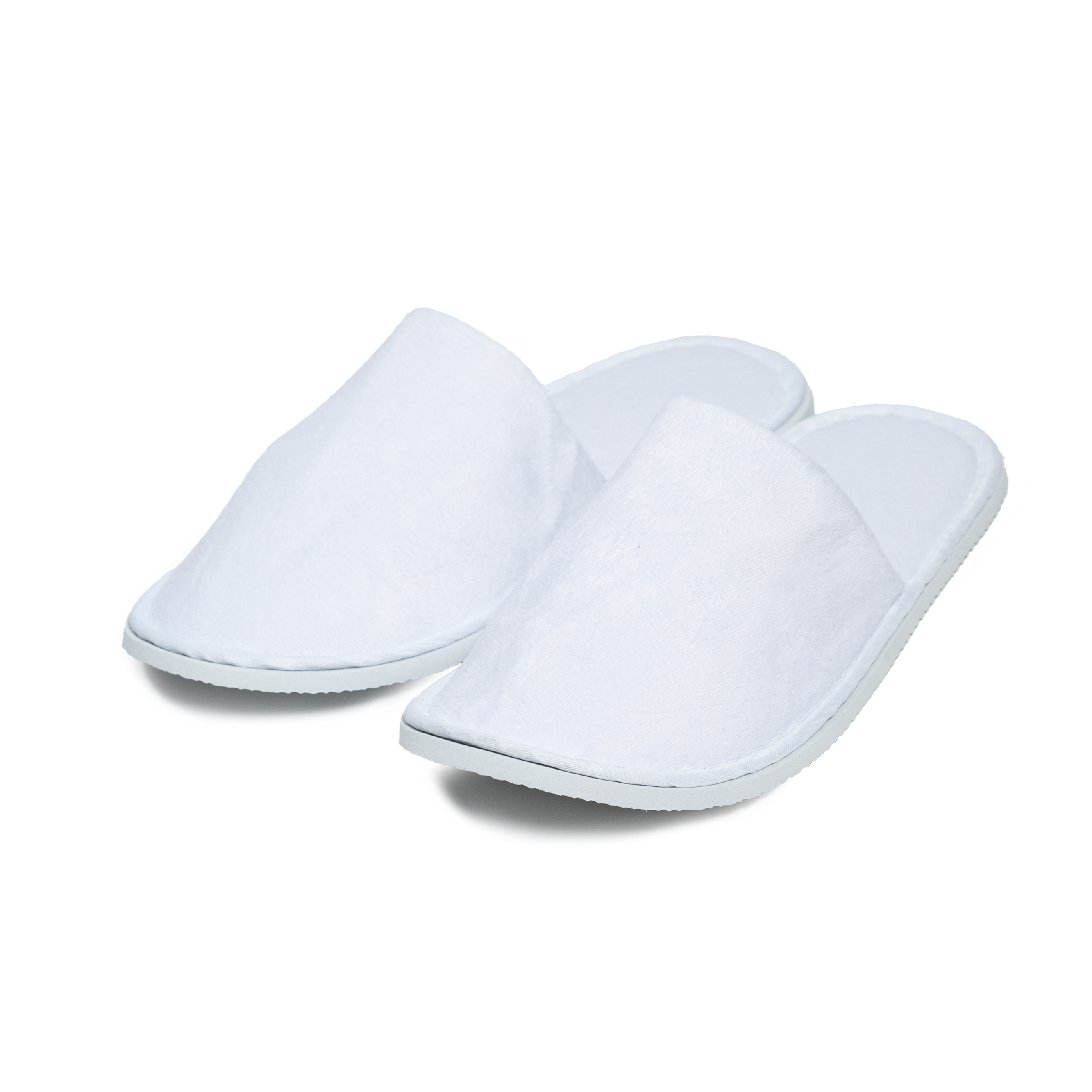 Pantuflas (Slippers) 100% Poly Terry Velour, suaves, cómodas y ligeras. Ideales para uso hotelero y zonas de descanso.