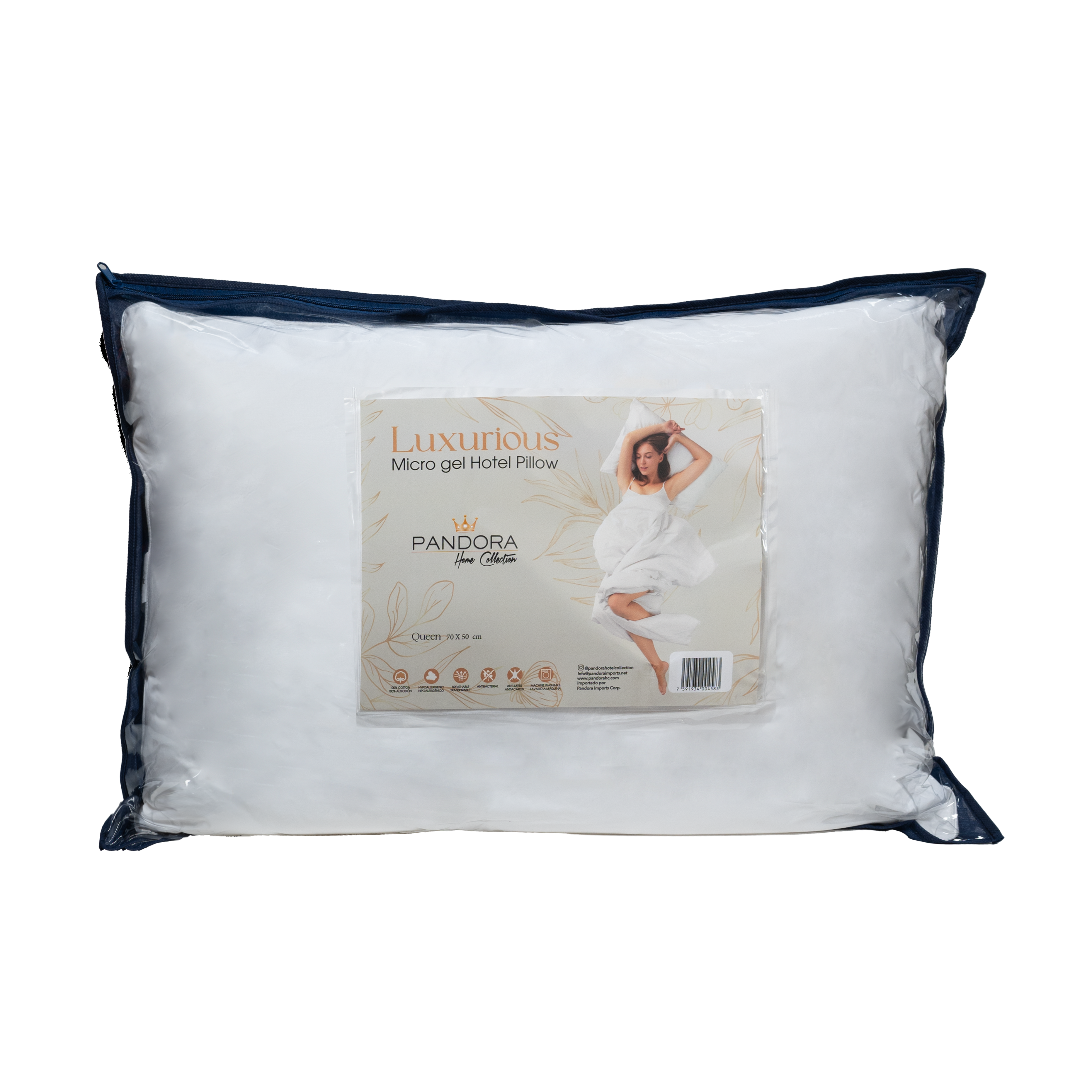 Nuestra almohada con relleno de fibra Micro Gel y tela de 300 hilos en algodón está diseñada para ofrecer una sensación ultrasuave, excelente adaptabilidad y alto nivel de confort durante el descanso. La fibra Micro Gel proporciona una experiencia similar a la pluma, pero con mayor uniformidad.
